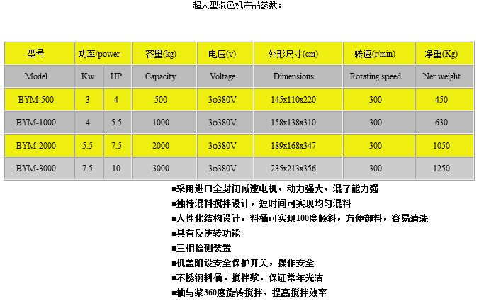 大型混色機特點: